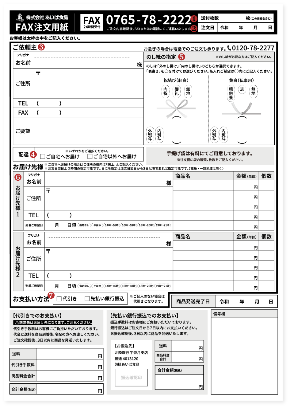 FAX注文用紙を下記の【FAX注文用紙をダウンロード】よりダウンロードしてご利用ください。