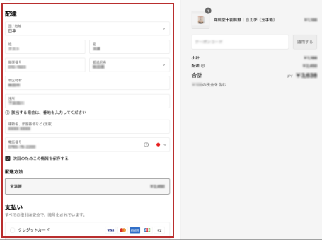 ご自宅への配送か、ご自宅以外への配送のどちらかを選択していただき、□にチェックを入れてください。