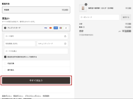 「今すぐ支払う」をクリックし、ご確定をお願いいたします。
