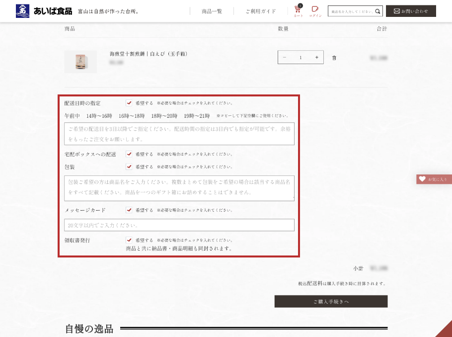 配送の際のご要望がある場合はご要望欄にご記入ください。