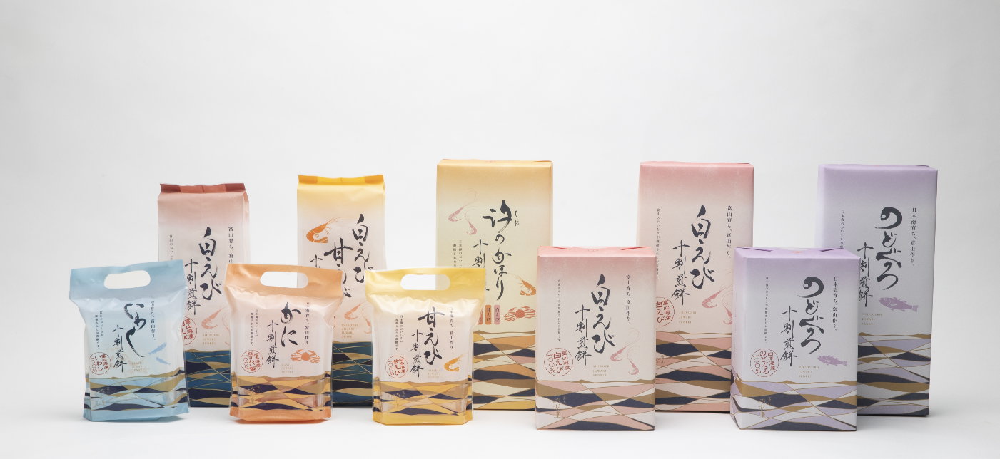 大きさは体長 6~7cm、重さ 1.6〜1.7g。4 月〜11 月に新湊漁港、四方漁港の水深 150〜300m ほどのところで年間 400 トンほど水揚げされます。鮮度の劣化が激しいため、漁獲後すぐに急速冷凍されるため1年を通して安定した美味しさを味わうことができます。